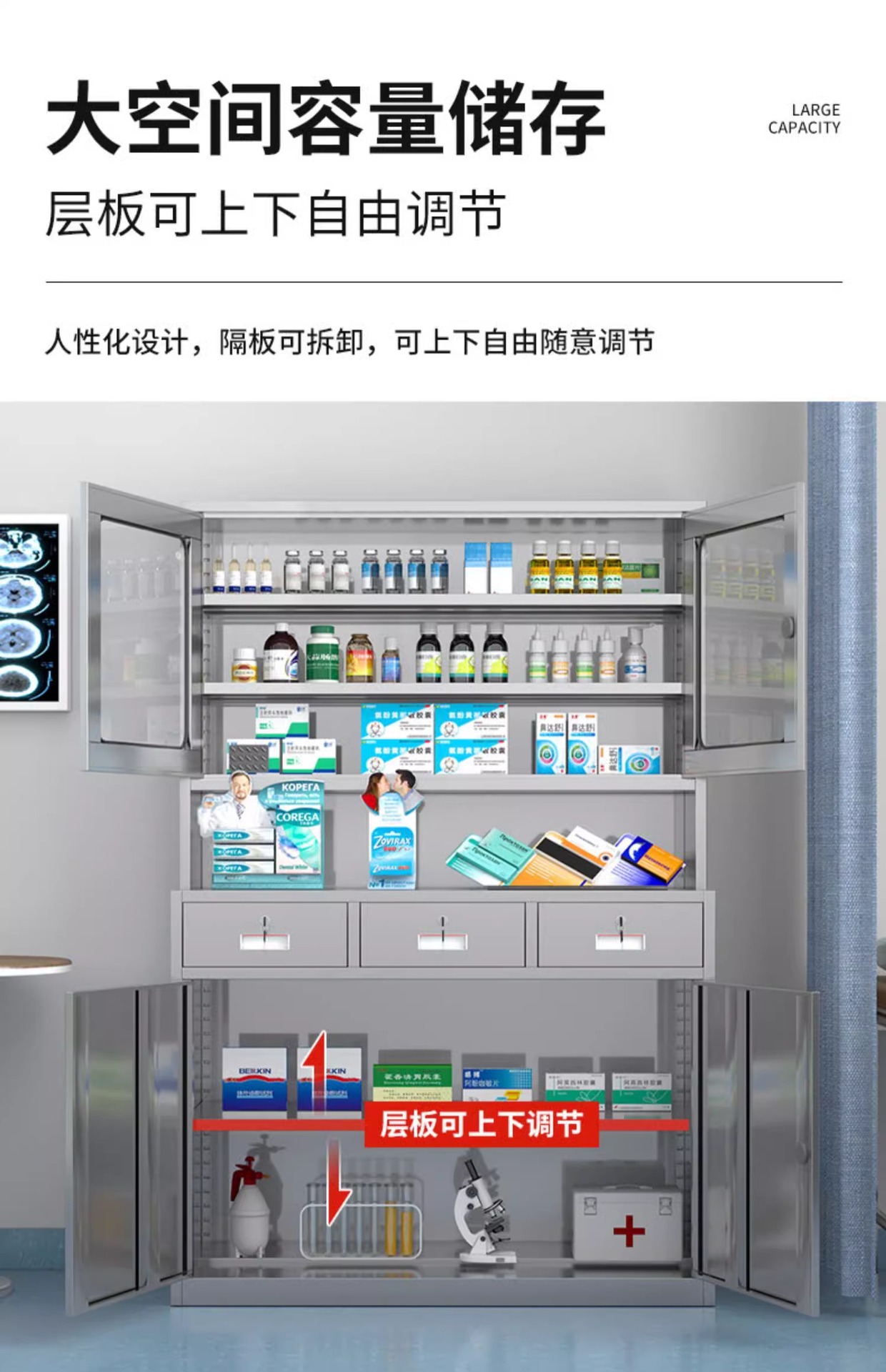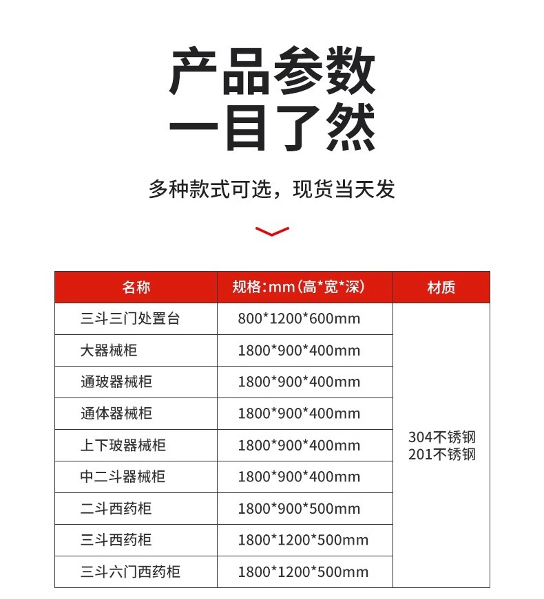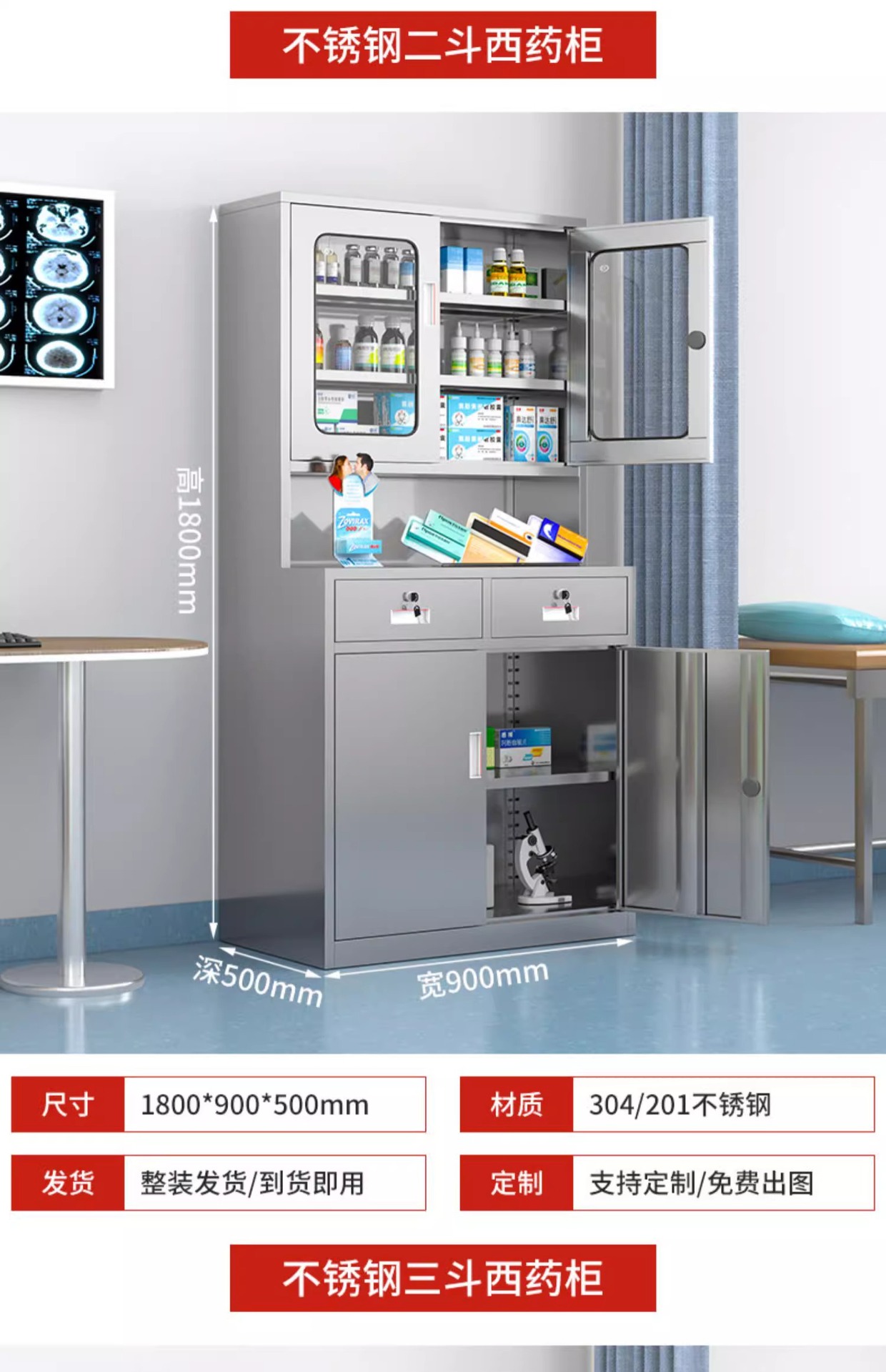 三斗四门不锈钢西药柜